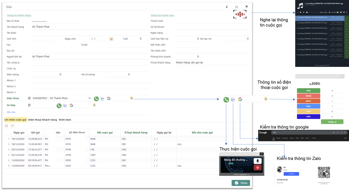 - Kết nối API với CRM hoặc các nền tảng quản lý khách hàng để đồng bộ dữ liệu, ghi nhận kết quả cuộc gọi và tự động gán trạng thái chăm sóc.